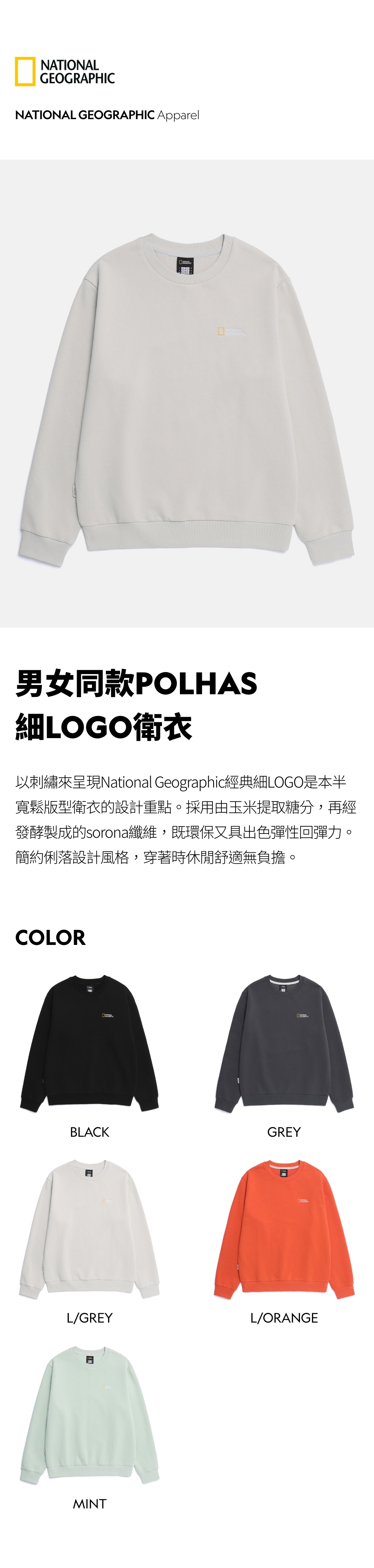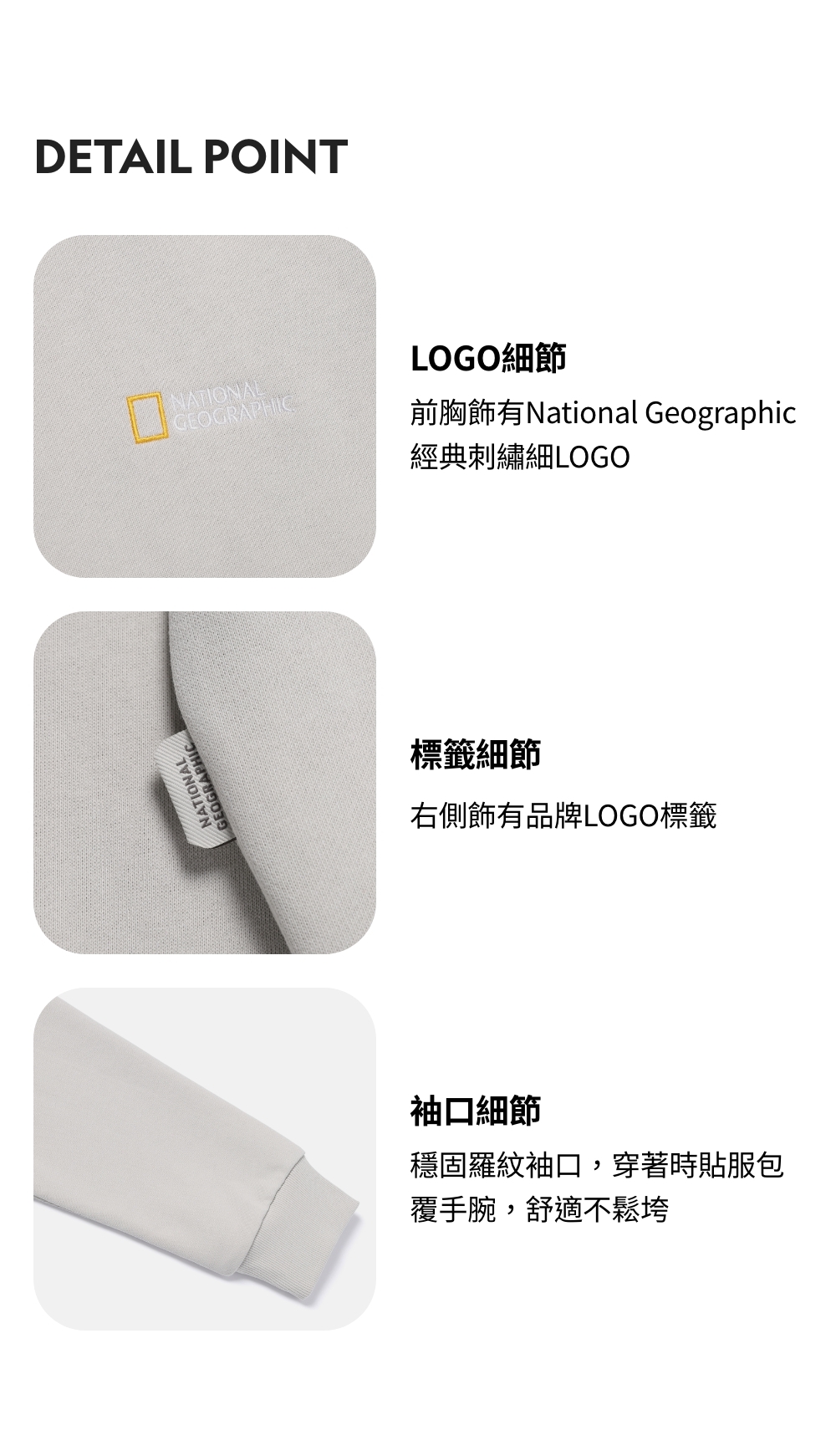 以刺繡來呈現National Geographic經典細LOGO是本半寬鬆版型衛衣的設計重點。