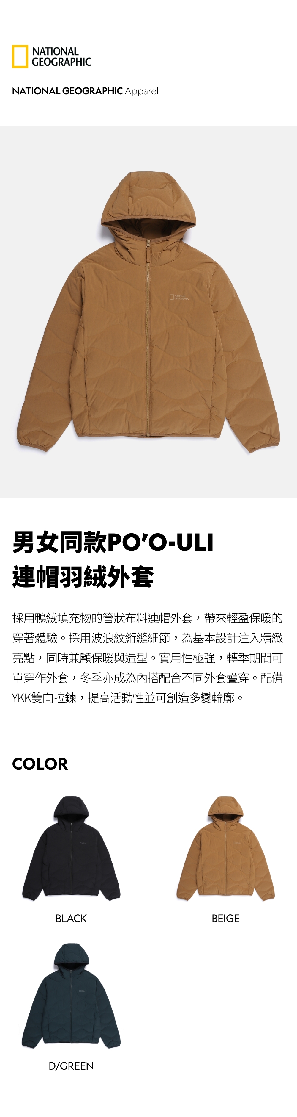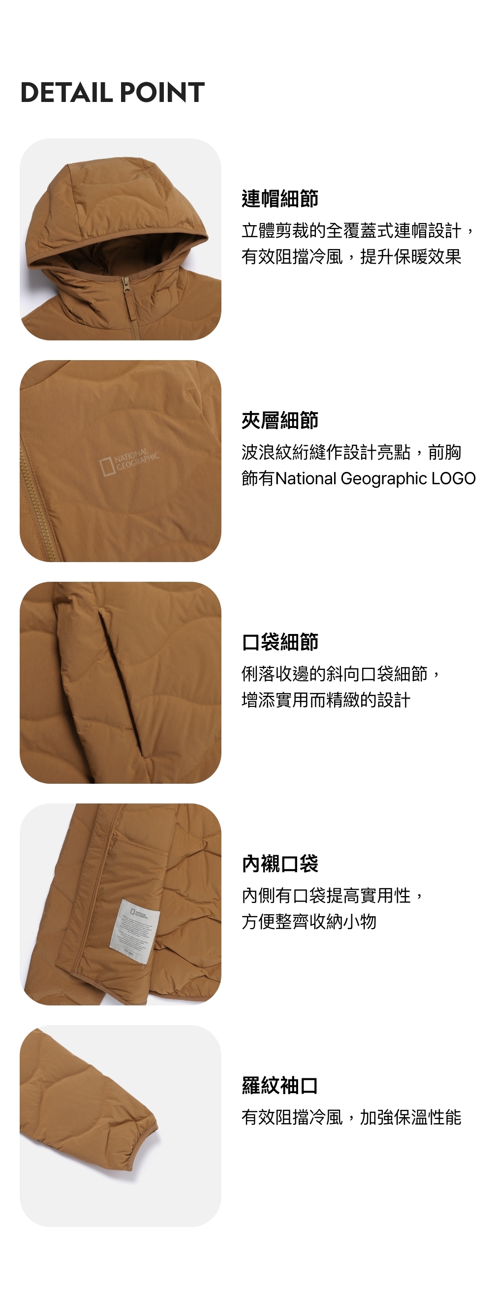 波浪紋絎縫作設計亮點,前胸飾有National Geographic LOGO