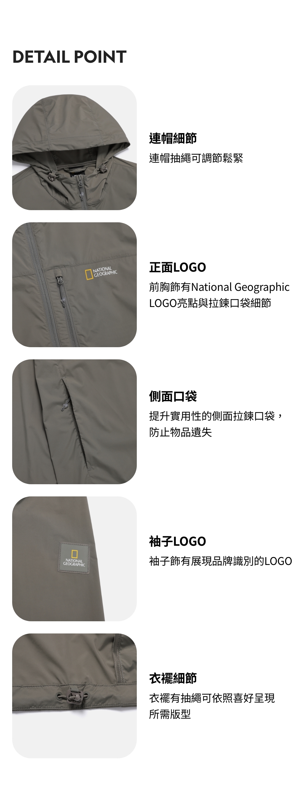 前胸飾有National Geographic LOGO亮點與拉鍊口袋細節