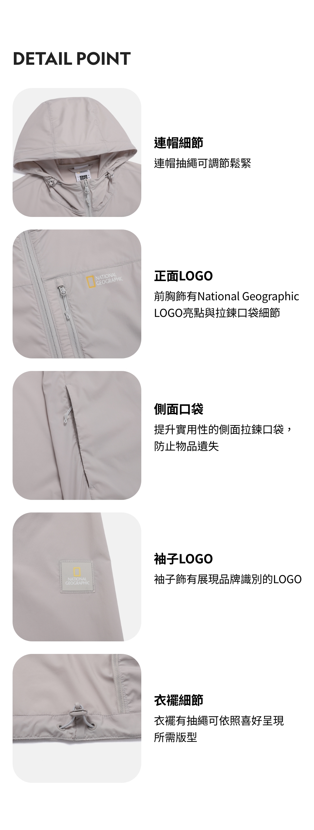 前胸飾有National Geographic LOGO亮點與拉鍊口袋細節