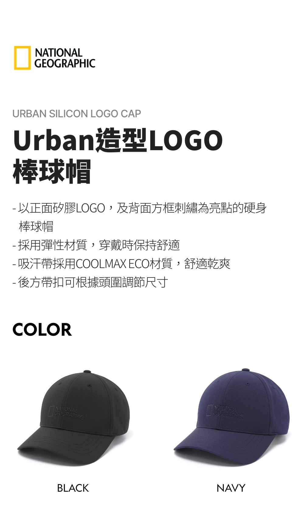 - 以正面矽膠LOGO,及背面方框刺繡為亮點的硬身棒球帽