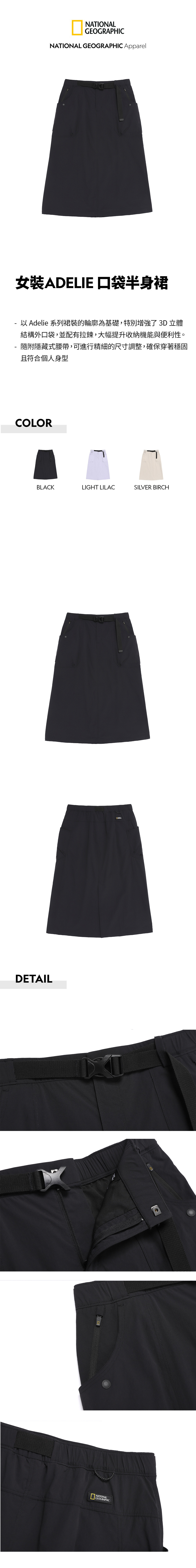 -以 Adelie 系列裙裝的輪廓為基礎,特別增強了 3D 立體結構外口袋,並配有拉鍊,大幅提升收納機能與便利性。