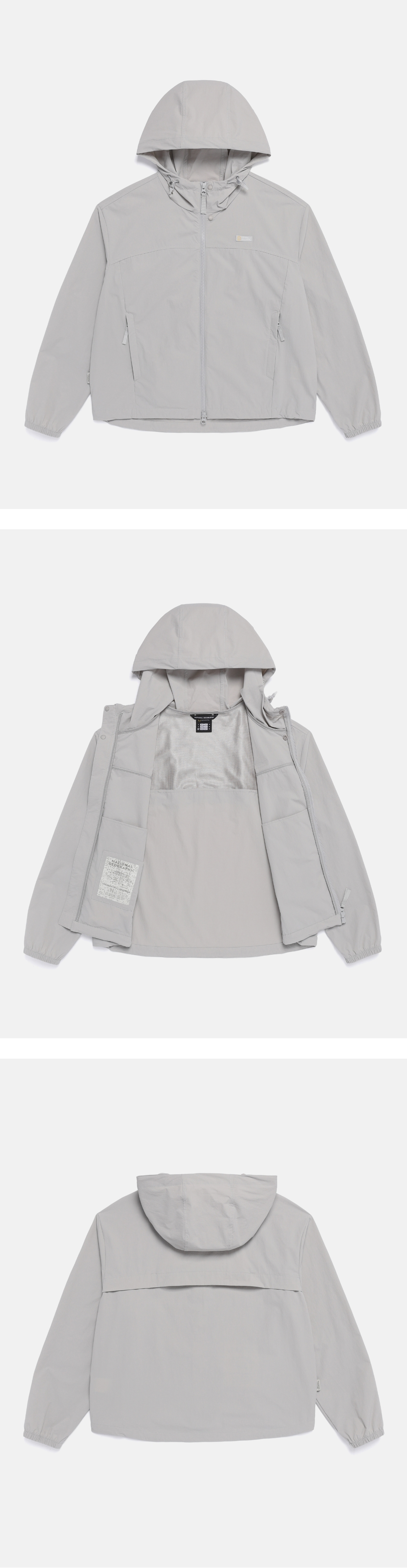 材質輕薄而實用,適合由轉季到盛夏期間穿著,以清涼觸感、高彈性及自然褶皺質感,完成高級外觀。採用有接觸涼感與防曬功能的機能材質,在輕量戶外活動或日常生活中均可確保靈活舒適。連帽與衣襬均有抽繩細節,方便自由調節輪廓,提升防風效果,加上拉鍊插手口袋強化實用收納。