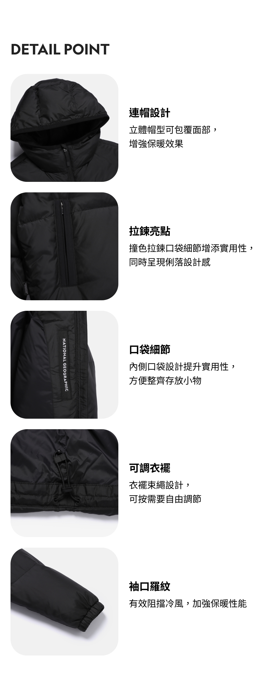 採用輕盈且堅韌的20D ripstop材質及80:20鵝絨填充物,帶來卓越保暖效能與豐盈蓬鬆感。