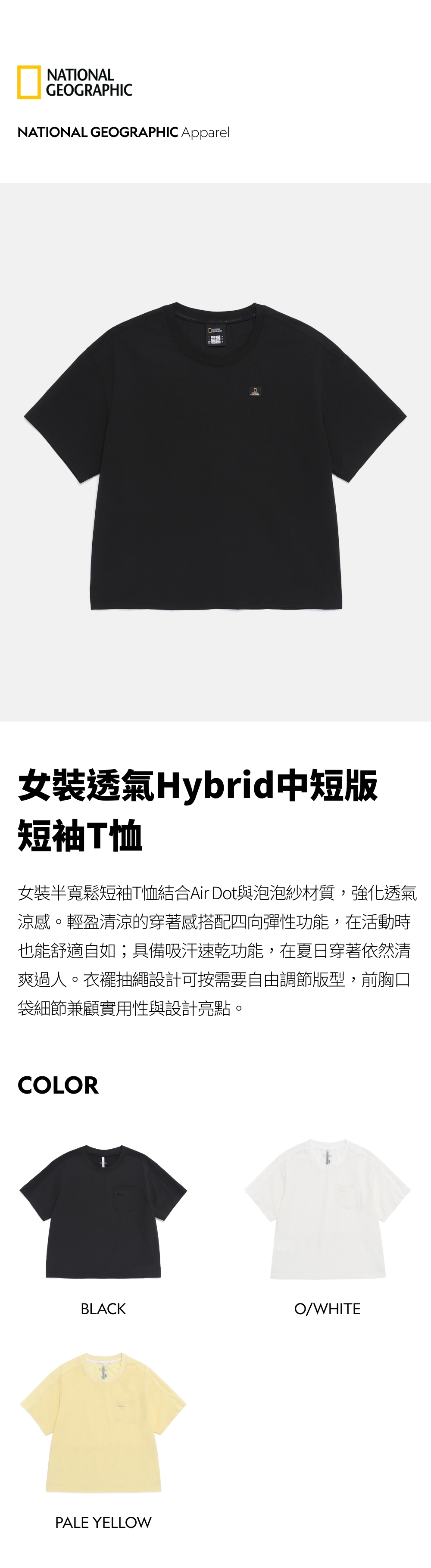 女裝透氣Hybrid中短版短袖T恤