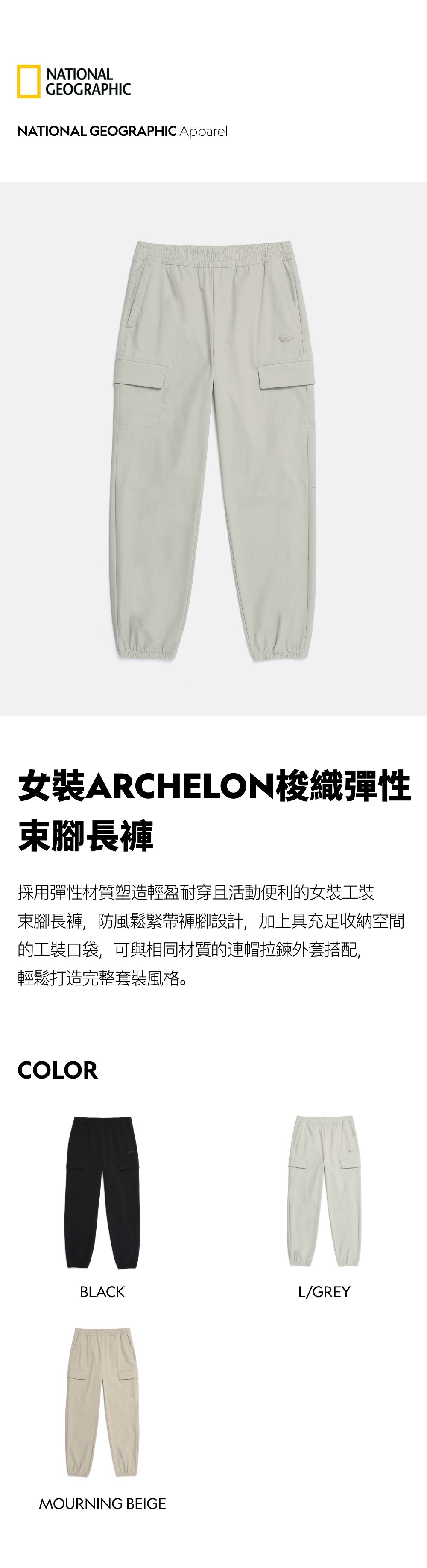 採用彈性材質塑造輕盈耐穿且活動便利的女裝工裝束腳長褲,防風鬆緊帶褲腳設計,加上具充足收納空間的工裝口袋,可與相同材質的連帽拉鍊外套搭配,輕鬆打造完整套裝風格。