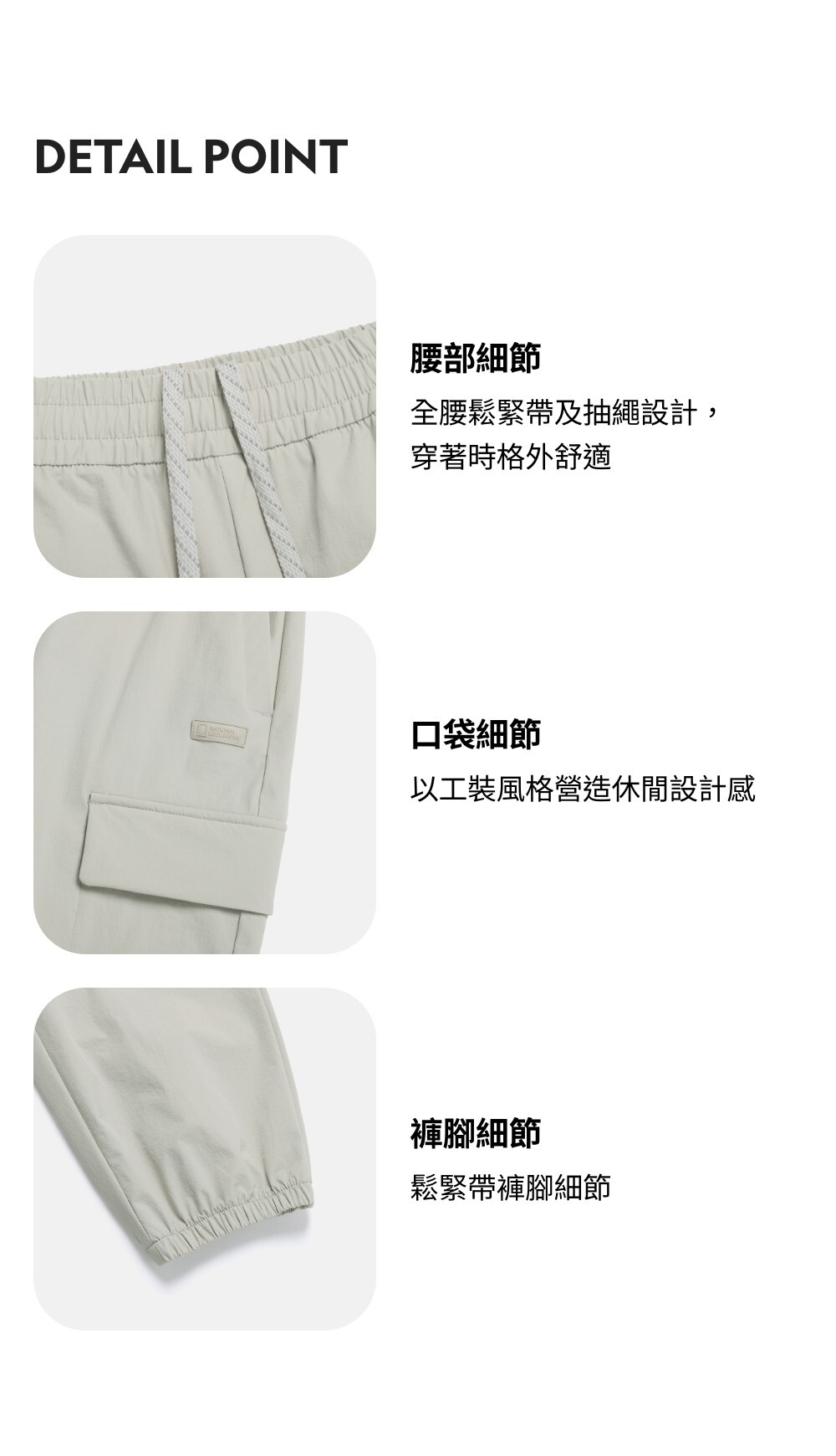 -腰部細節:全腰鬆緊帶及抽繩設計,穿著時格外舒適