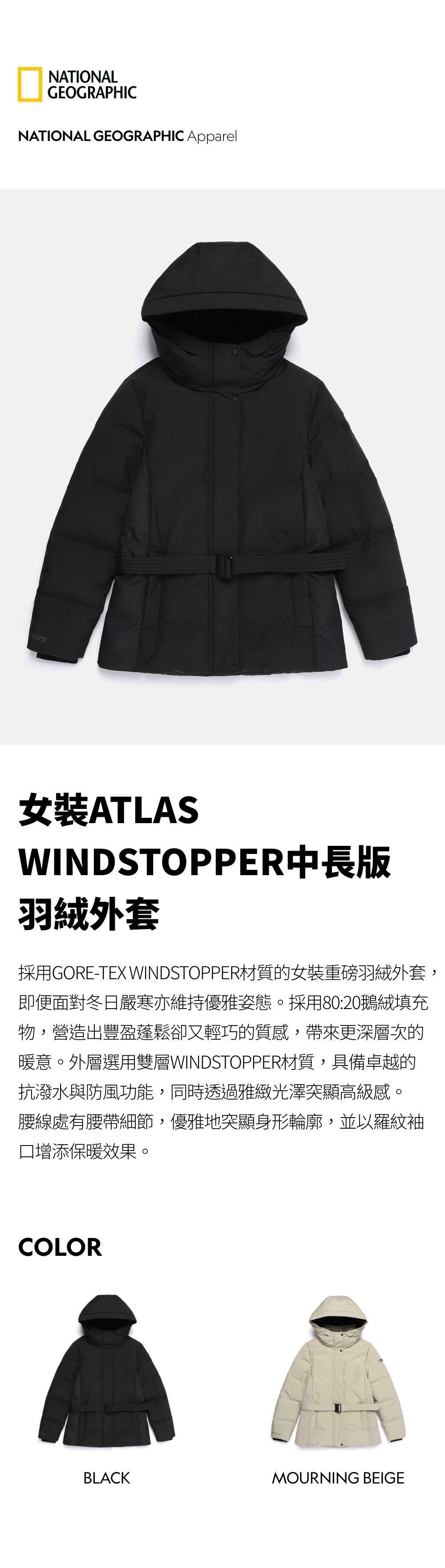 採用GORE-TEX WINDSTOPPER材質的女裝重磅羽絨外套,即便面對冬日嚴寒亦維持優雅姿態。