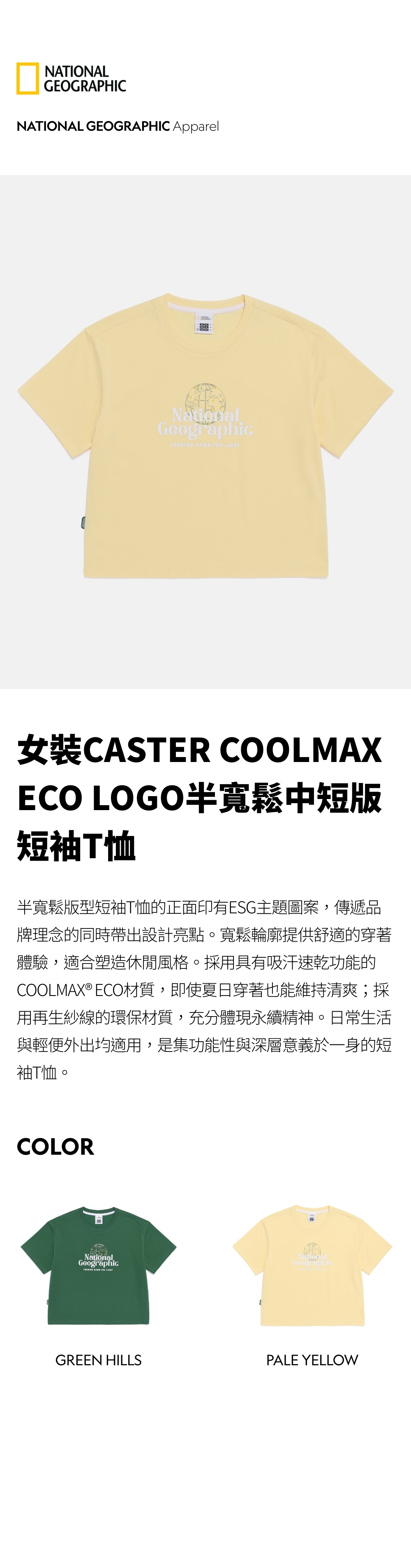半寬鬆版型短袖T恤的正面印有ESG主題圖案,傳遞品牌理念的同時帶出設計亮點。寬鬆輪廓提供舒適的穿著體驗,適合塑造休閒風格。採用具有吸汗速乾功能的COOLMAX® ECO材質,即使夏日穿著也能維持清爽;採用再生紗線的環保材質,充分體現永續精神。日常生活與輕便外出均適用,是集功能性與深層意義於一身的短袖T恤。