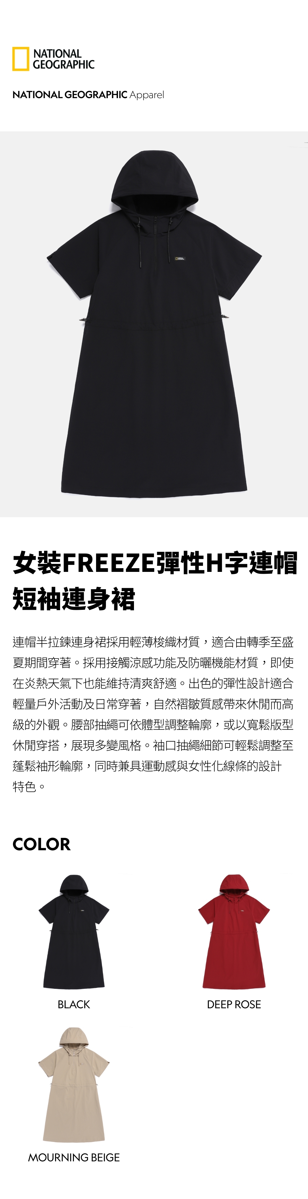 連帽半拉鍊連身裙採用輕薄梭織材質,適合由轉季至盛夏期間穿著。採用接觸涼感功能及防曬機能材質,即使在炎熱天氣下也能維持清爽舒適。出色的彈性設計適合輕量戶外活動及日常穿著,自然褶皺質感帶來休閒而高級的外觀。腰部抽繩可依體型調整輪廓,或以寬鬆版型休閒穿搭,展現多變風格。袖口抽繩細節可輕鬆調整至蓬鬆袖形輪廓,同時兼具運動感與女性化線條的設計特色。