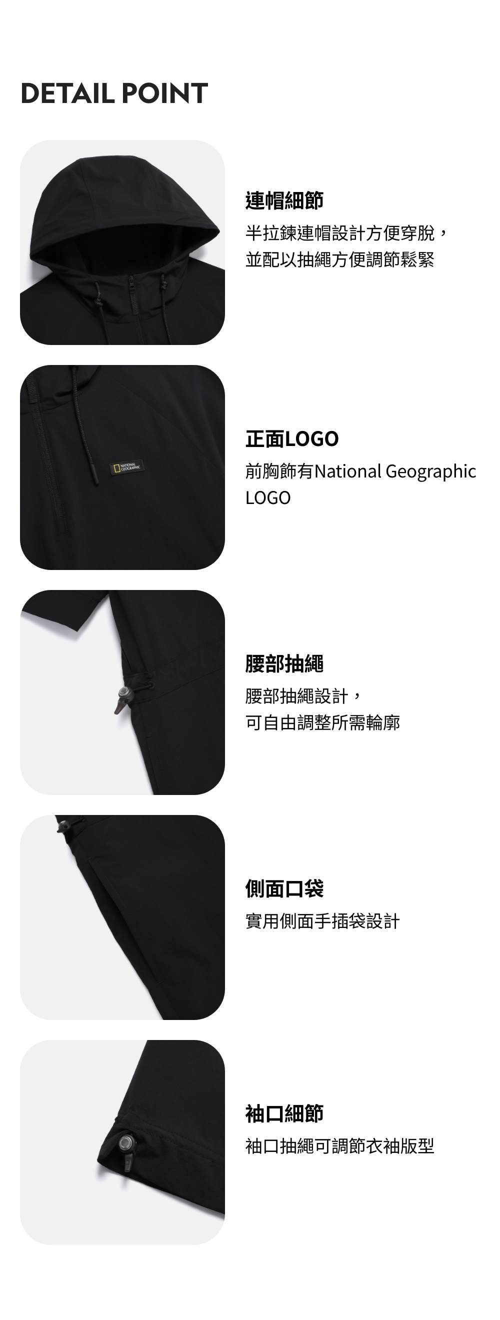 半拉鍊連帽設計方便穿脫,並配以抽繩方便調節鬆緊