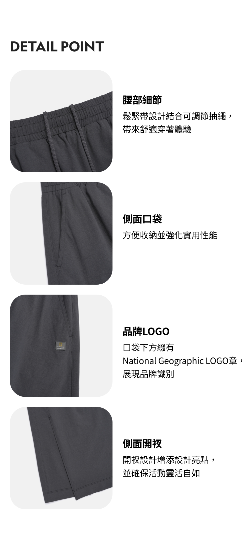 鬆緊帶設計結合可調節抽繩,帶來舒適穿著體驗