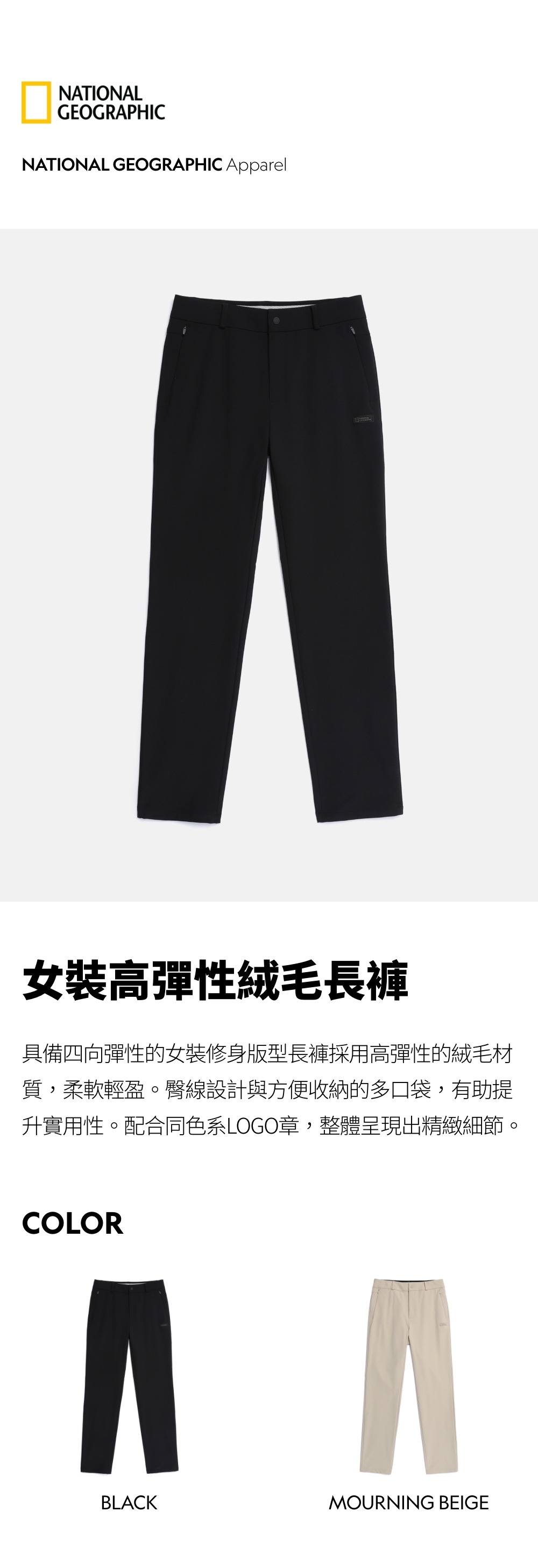 具備四向彈性的女裝修身版型長褲採用高彈性的絨毛材質,柔軟輕盈。