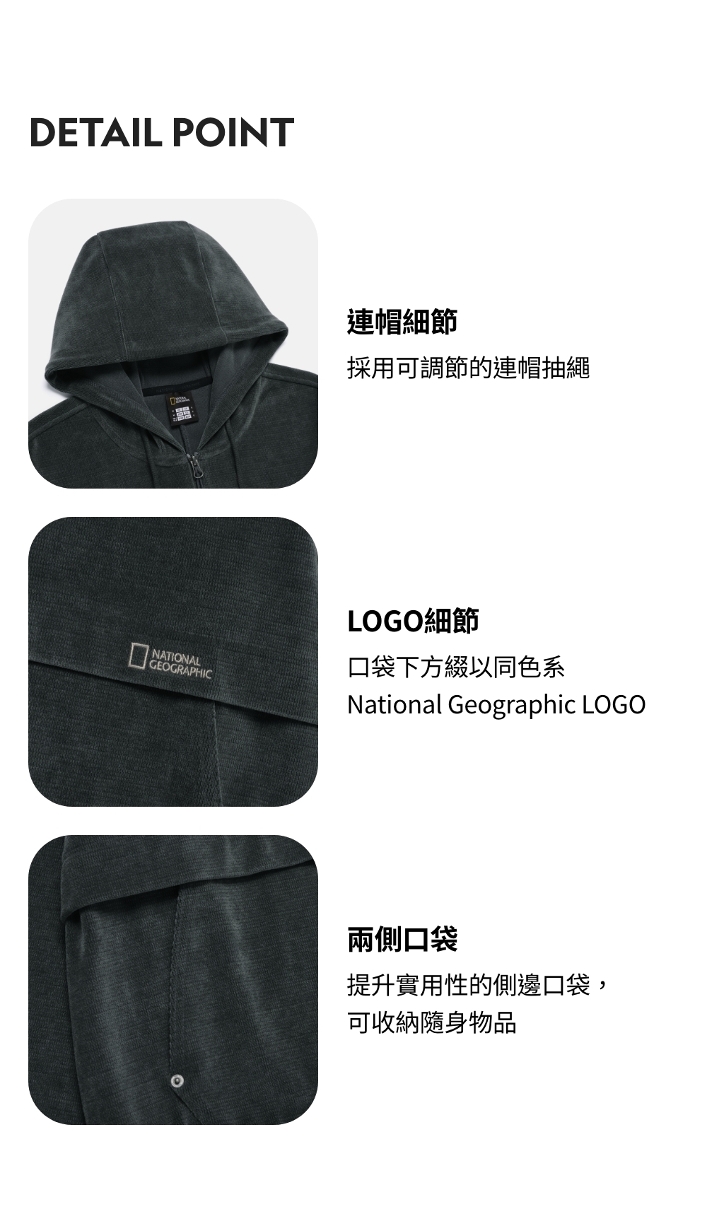 口袋下方綴以同色系National Geographic LOGO