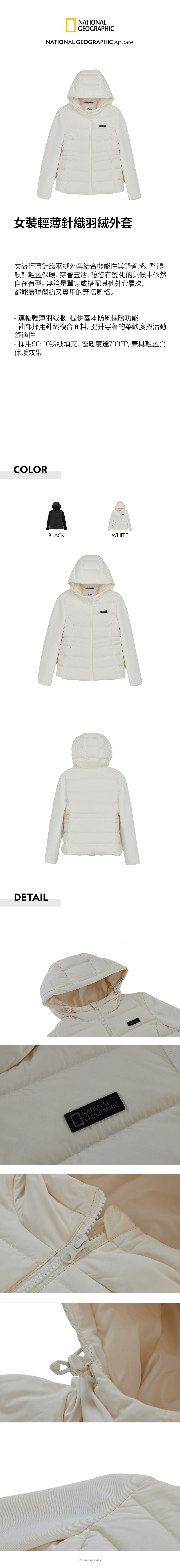 - 連帽輕薄羽絨服,提供基本防風保暖功能