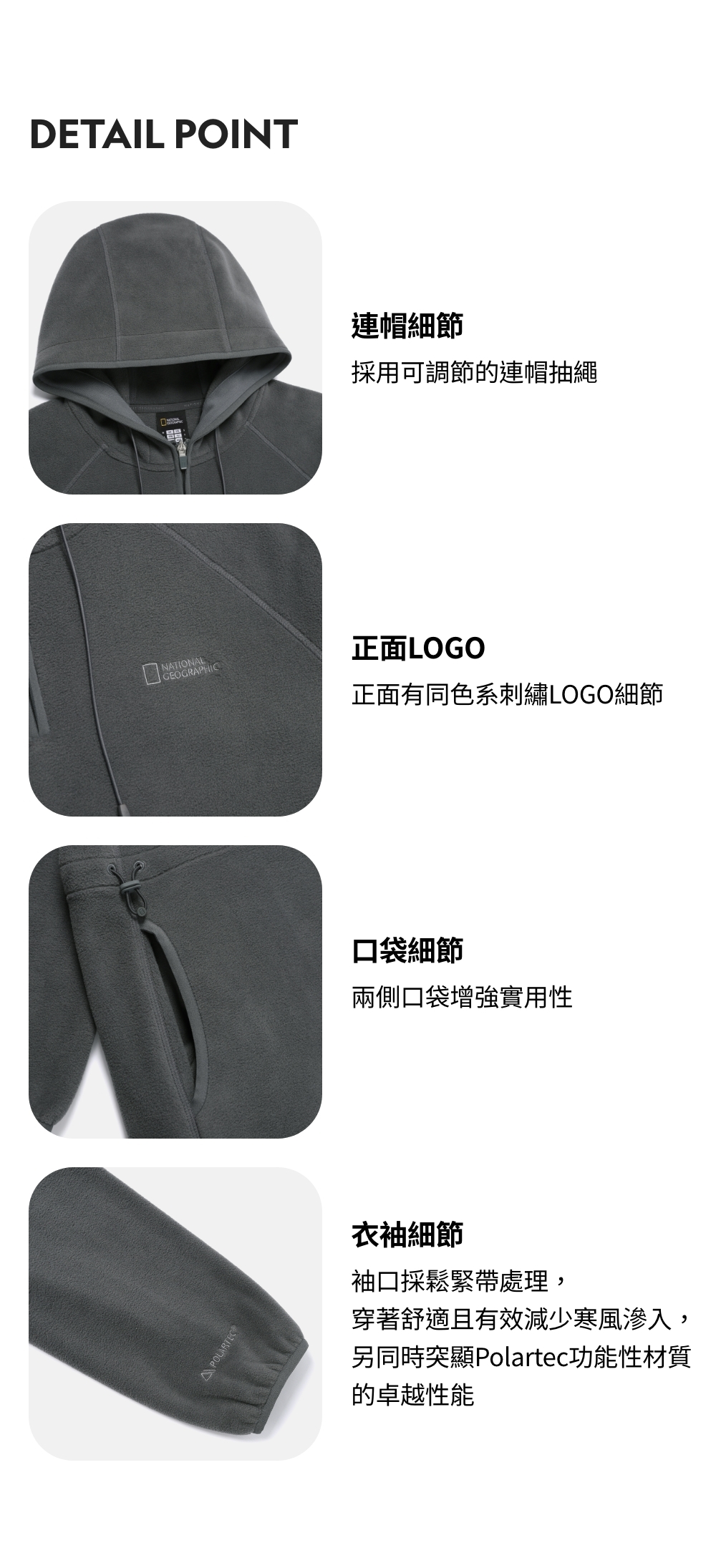 袖口採鬆緊帶處理,穿著舒適且有效減少寒風滲入,另同時突顯Polartec功能性材質的卓越性能