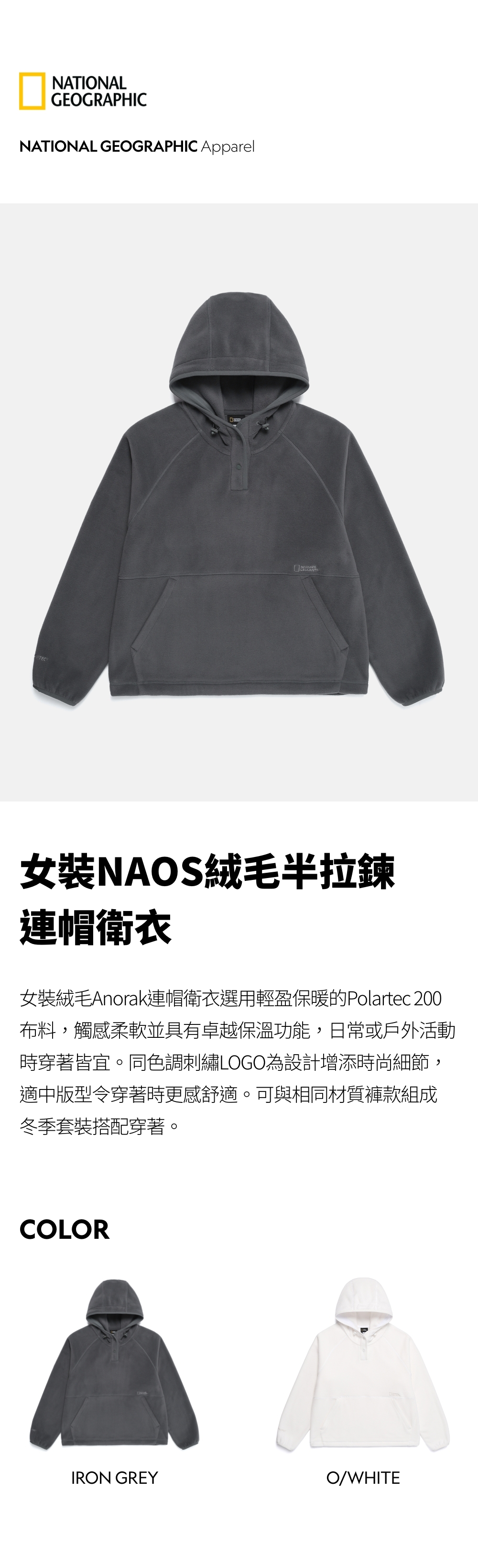 女裝絨毛Anorak連帽衛衣選用輕盈保暖的Polartec 200布料,觸感柔軟並具有卓越保溫功能,日常或戶外活動時穿著皆宜。