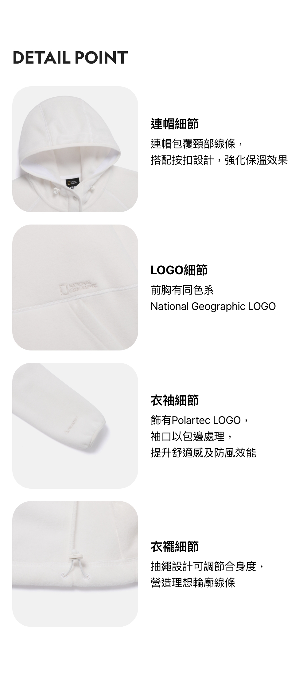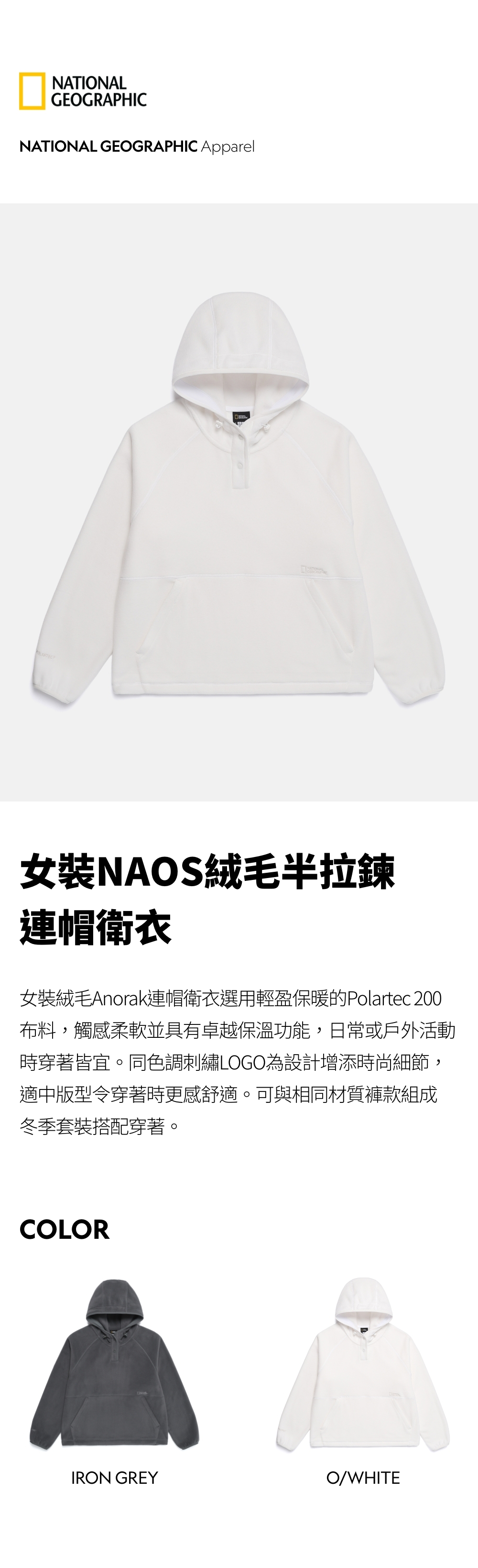 女裝絨毛Anorak連帽衛衣選用輕盈保暖的Polartec 200布料,觸感柔軟並具有卓越保溫功能,日常或戶外活動時穿著皆宜。