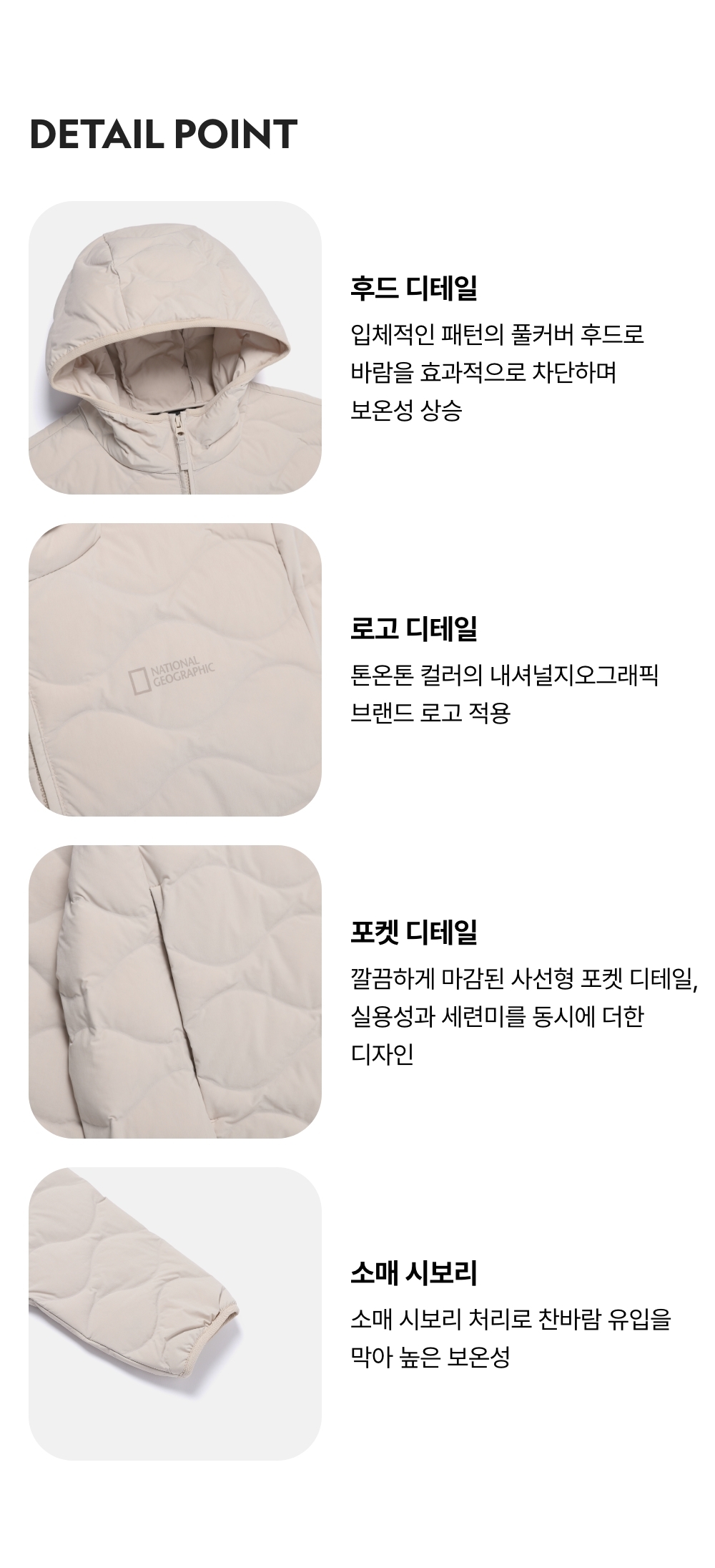 立體剪裁的全覆蓋式連帽設計,有效阻擋冷風,提升保暖效果