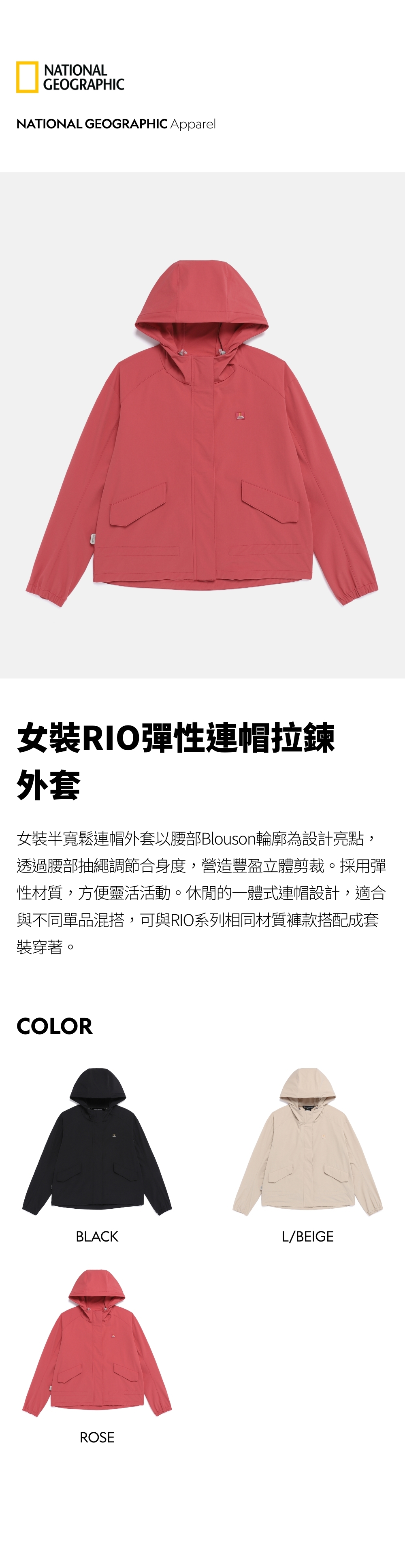 女裝RIO彈性連帽拉鍊外套