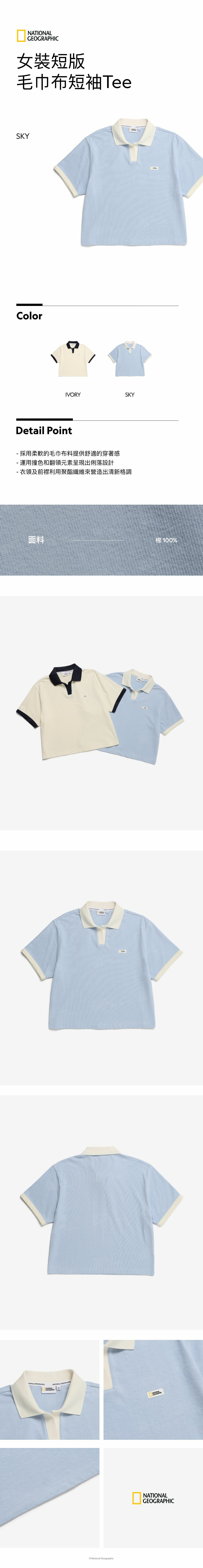 - 衣領及前襟利用聚酯纖維來營造出清新格調