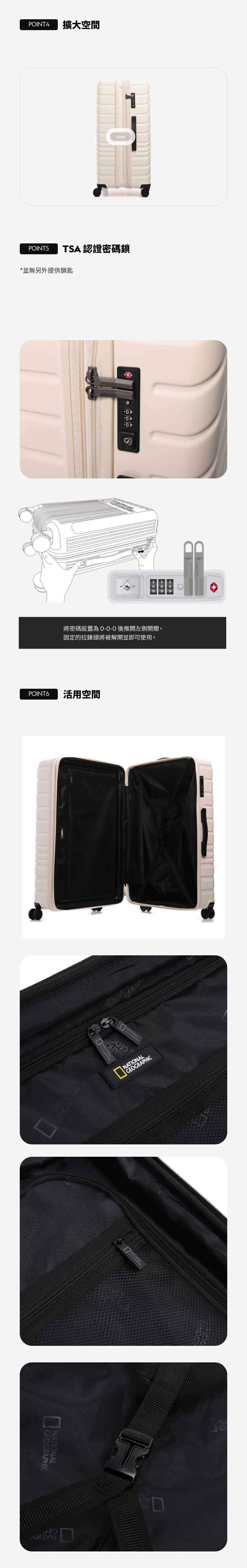 - 採用TSA(美國運輸安全管理局)認證密碼鎖,預防行李箱在全球多個國家的海關檢查中被撬開破壞 (並無另外提供鎖匙)