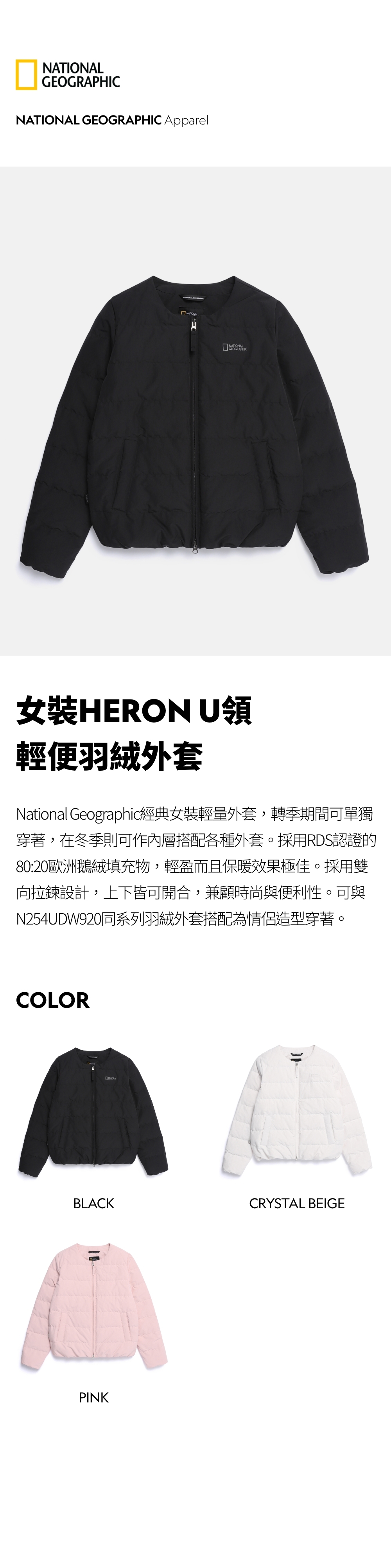 National Geographic經典女裝輕量外套,轉季期間可單獨穿著,在冬季則可作內層搭配各種外套。