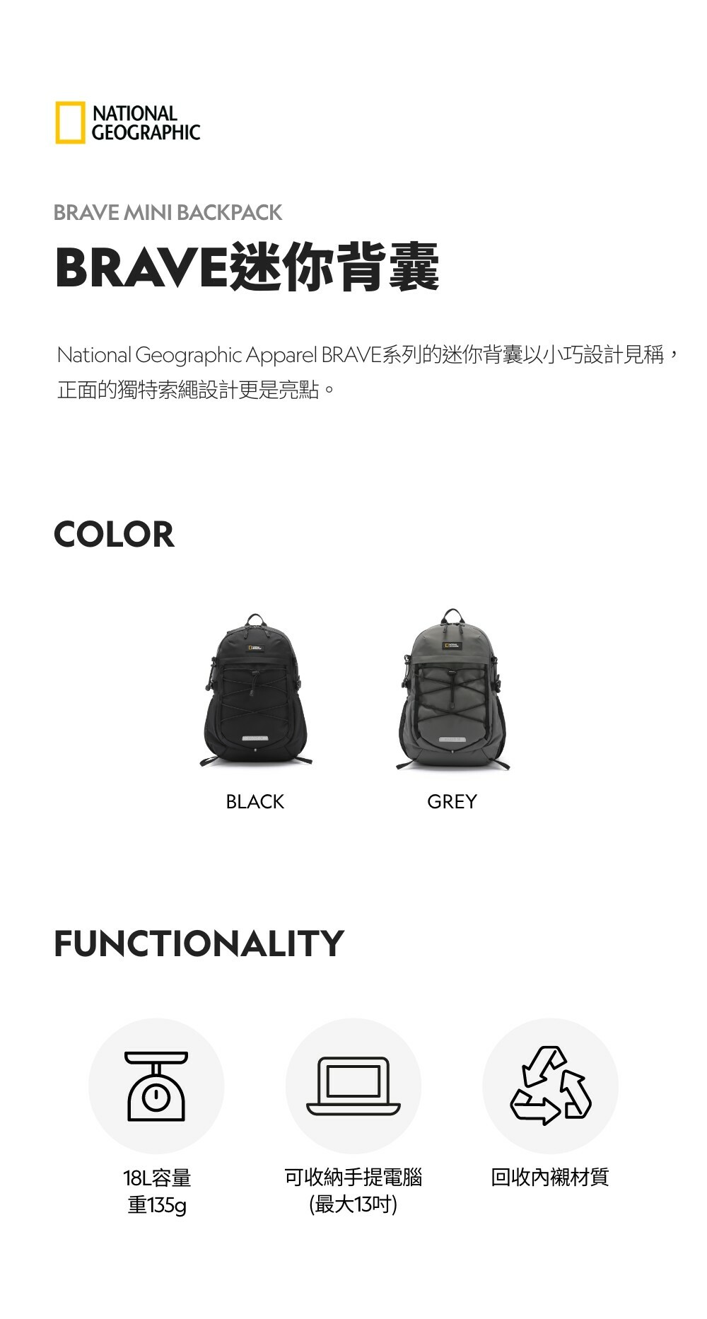 National Geographic Apparel BRAVE系列的迷你背囊以小巧設計見稱,正面的獨特索繩設計更是亮點。