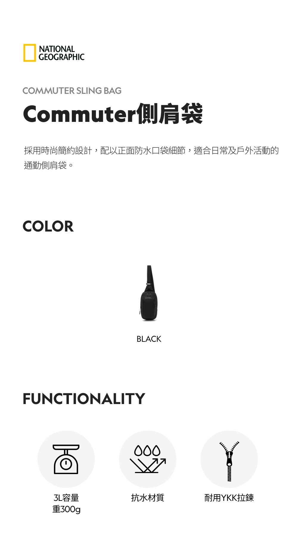 採用時尚簡約設計,配以正面防水口袋細節,適合日常及戶外活動的通勤側肩袋