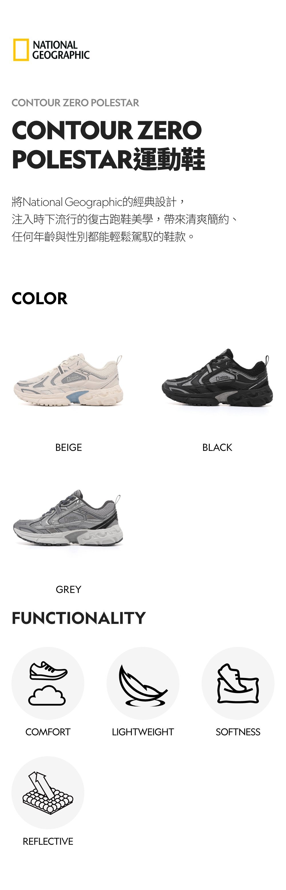 - 將National Geographic的經典設計,注入時下流行的復古跑鞋美學,帶來清爽簡約、任何年齡與性別都能輕鬆駕馭的鞋款。