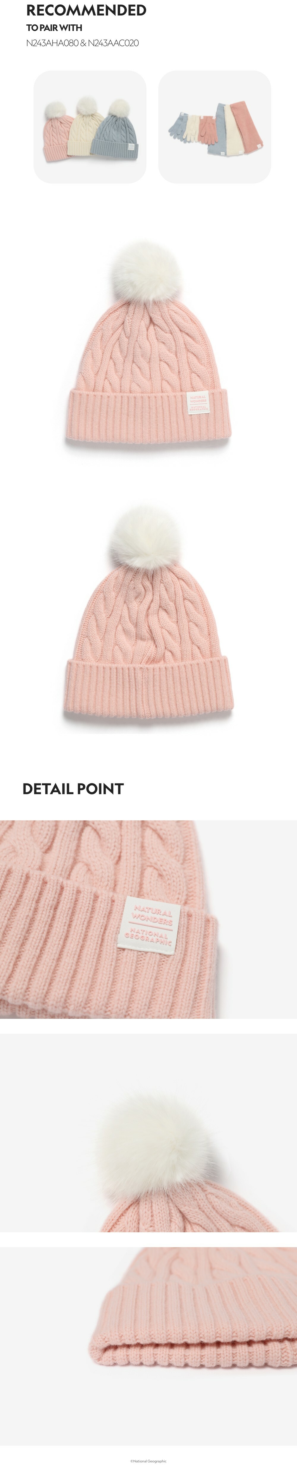 - 飾有毛球裝飾的舒適麻花紋針織冷帽