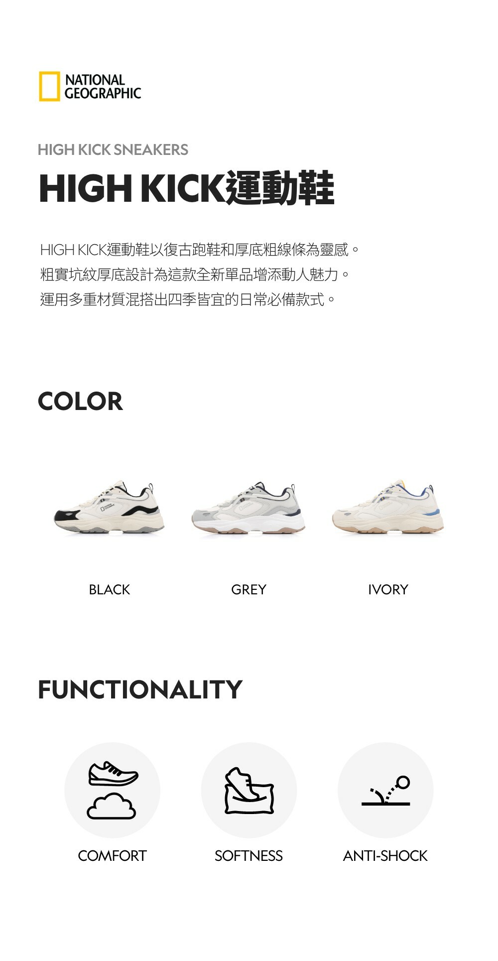 HIGH KICK運動鞋以復古跑鞋和厚底粗線條為靈感。