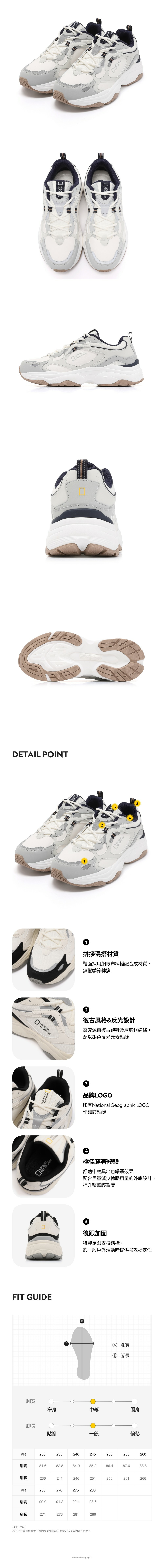 復古風格 & 反光設計:靈感源自復古跑鞋及厚底粗線條,配以銀色反光元素點綴