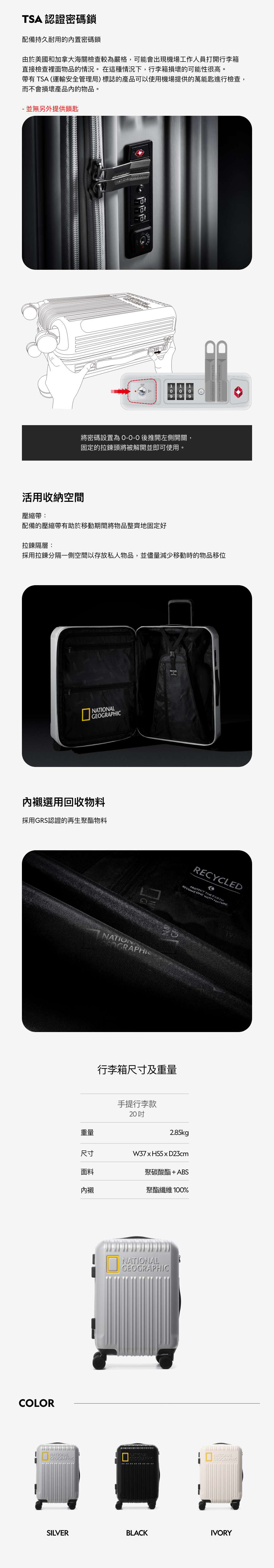 - 採用TSA(美國運輸安全管理局)認證密碼鎖,預防行李箱在全球多個國家的海關檢查中被撬開破壞 (並無另外提供鎖匙)