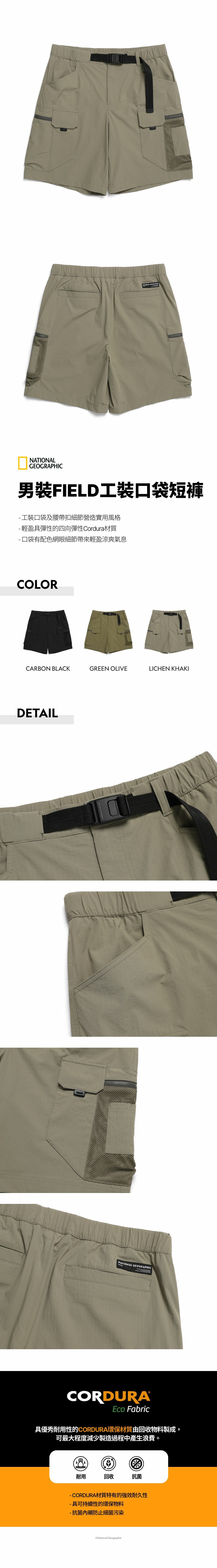 - 工裝口袋及腰帶扣細節營造實用風格