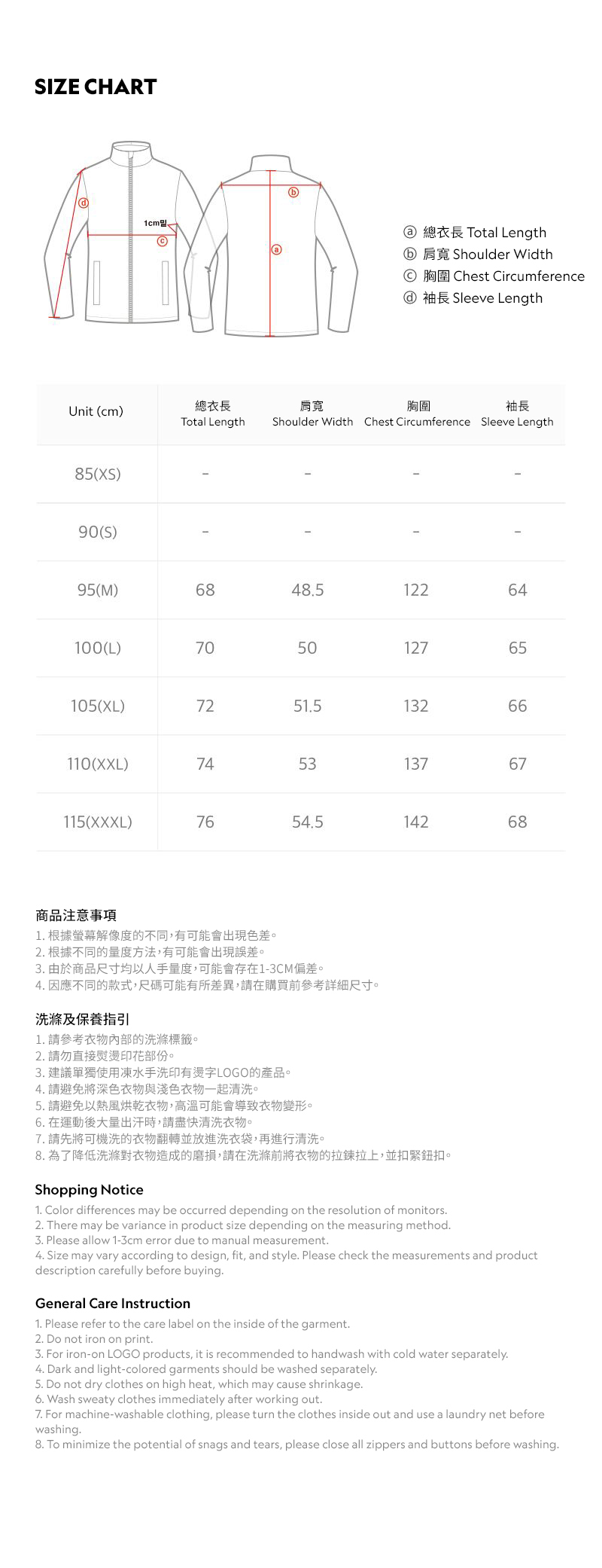 - 具防潑水功能方便活動,發熱內襯及連帽亦可增強保暖能力
