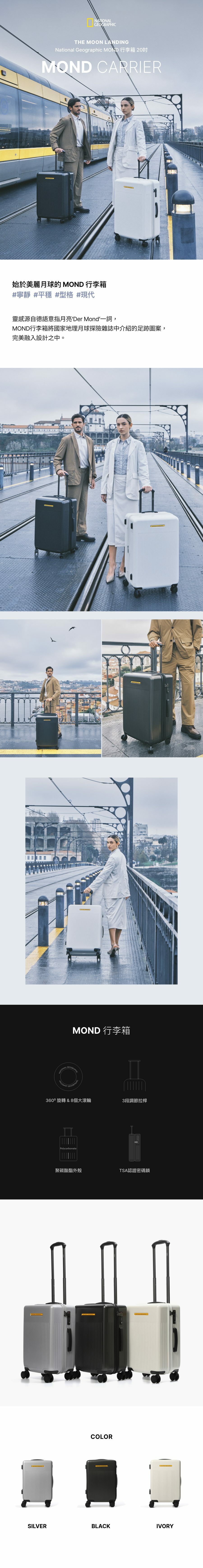 - 靈感源自德語意指月亮‘Der Mond’一詞,MOND行李箱將國家地理月球探險雜誌中介紹的足跡圖案,完美融入設計之中。
