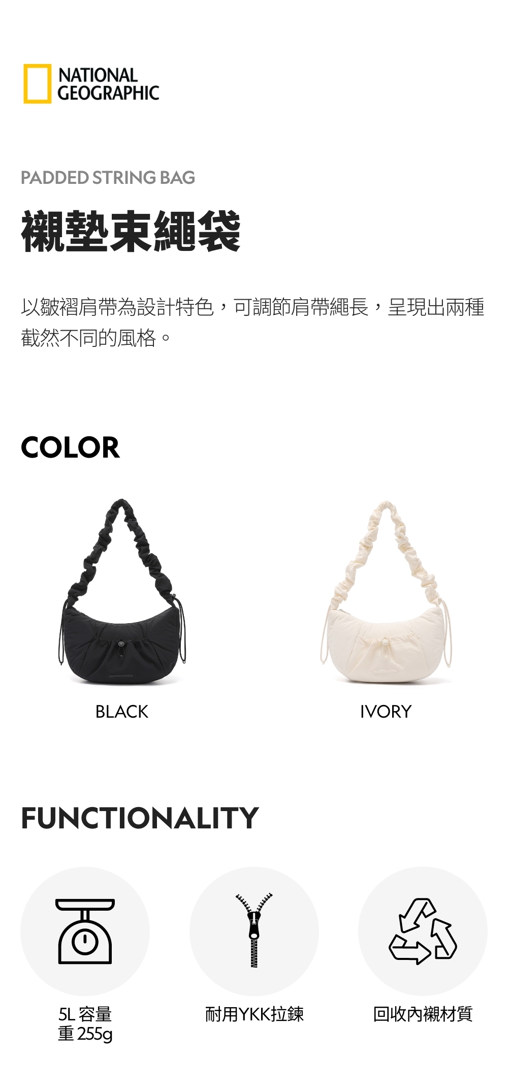 -雙重用法:可調節肩帶繩長,靈活切換至斜孭袋或單肩袋