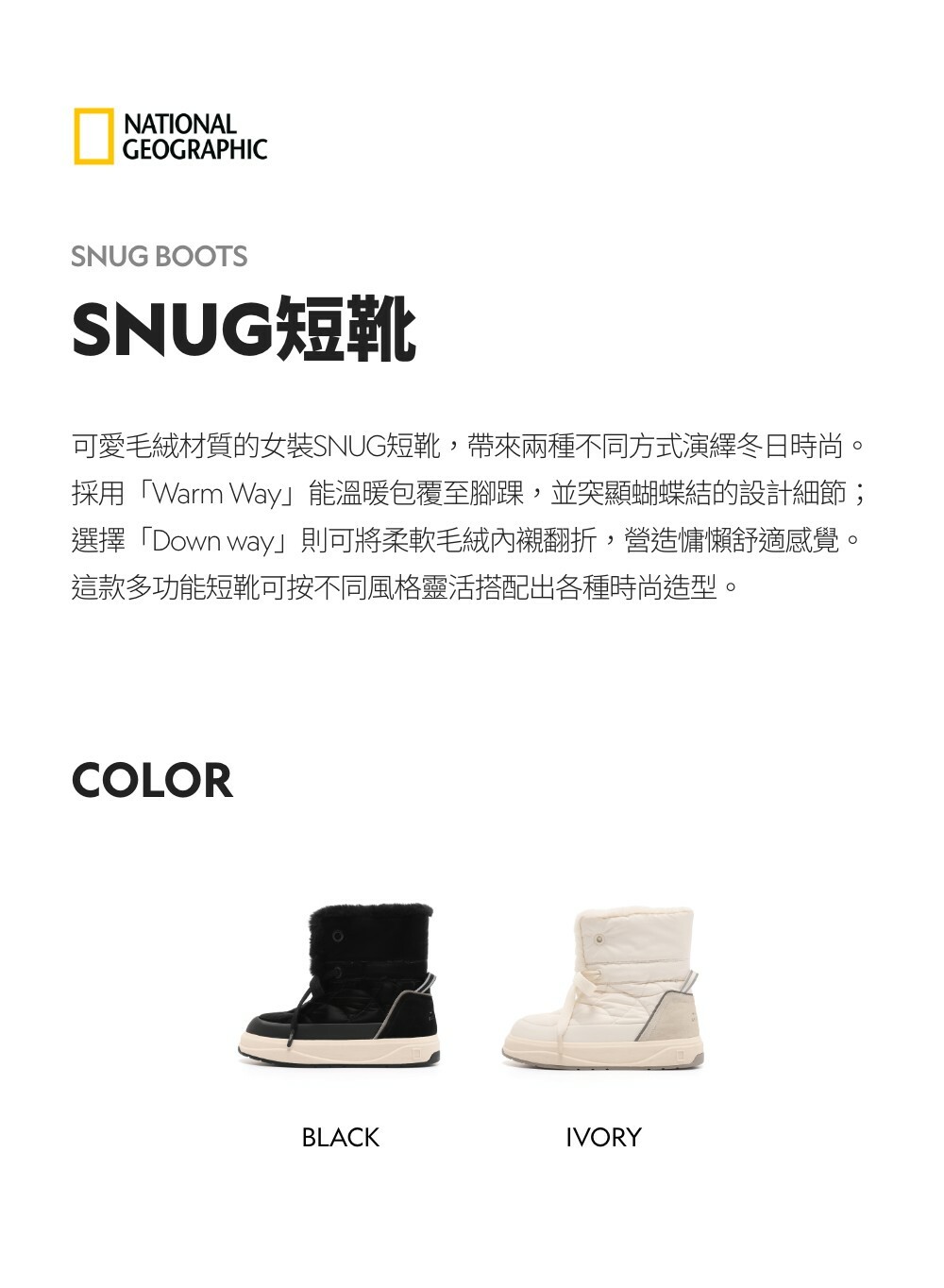 可愛毛絨材質的女裝SNUG短靴,帶來兩種不同方式演繹冬日時尚。
