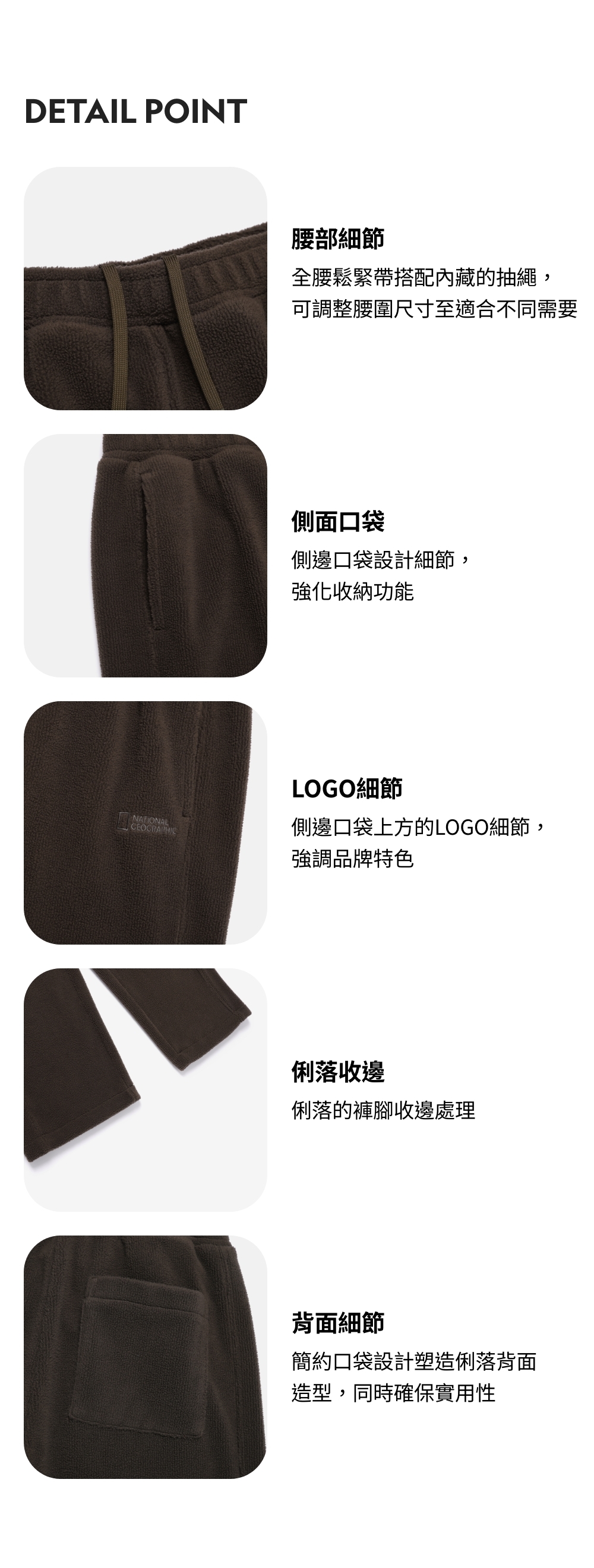 全腰圍鬆緊帶設計提供舒適穿著感,易於保養且保暖性佳。