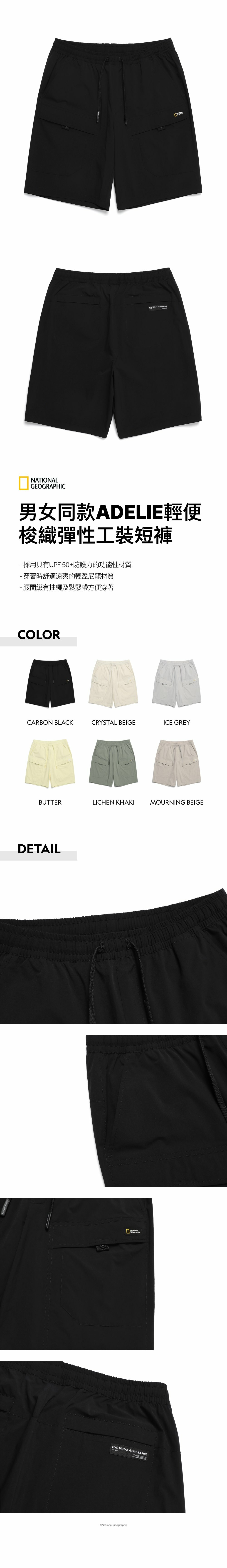- 腰間綴有抽繩及鬆緊帶方便穿著