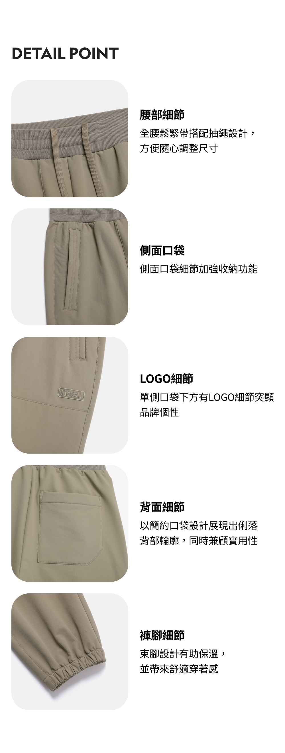 這款束腳褲採用梭織彈性材質,結合柔軟絨毛內襯,不單帶來出色保溫力,穿著時更添舒適。
