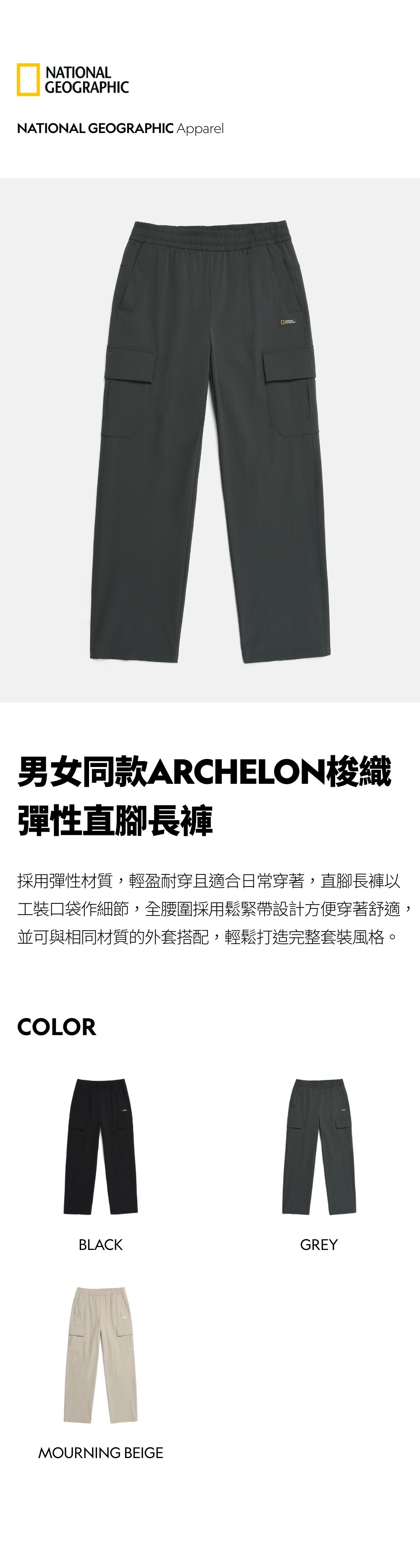 採用彈性材質,輕盈耐穿且適合日常穿著,直腳長褲以工裝口袋作細節,全腰圍採用鬆緊帶設計方便穿著舒適,並可與相同材質的外套搭配,輕鬆打造完整套裝風格。