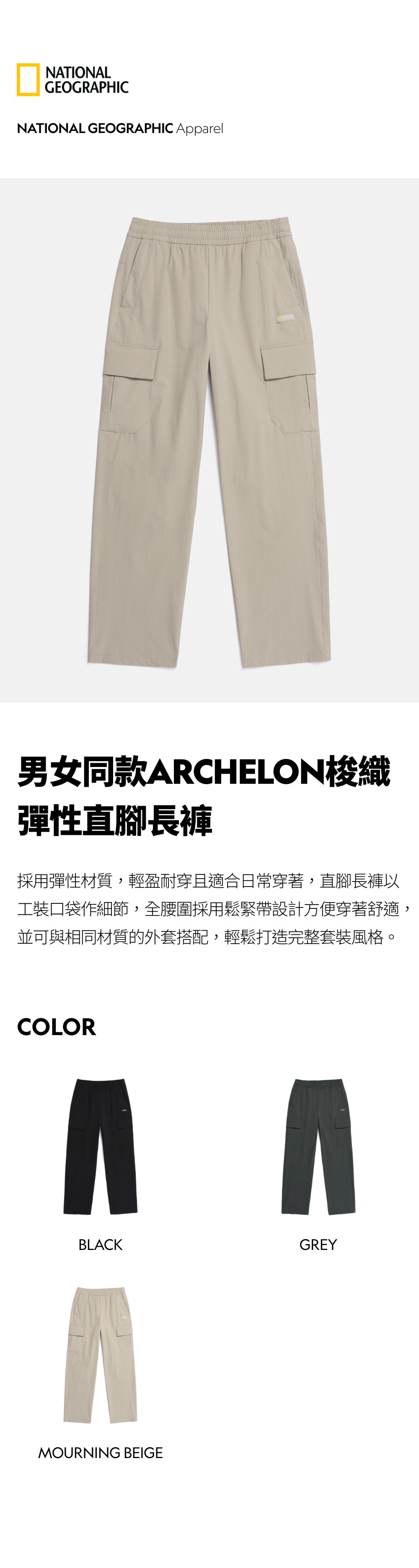 採用彈性材質,輕盈耐穿且適合日常穿著,直腳長褲以工裝口袋作細節,全腰圍採用鬆緊帶設計方便穿著舒適,並可與相同材質的外套搭配,輕鬆打造完整套裝風格。