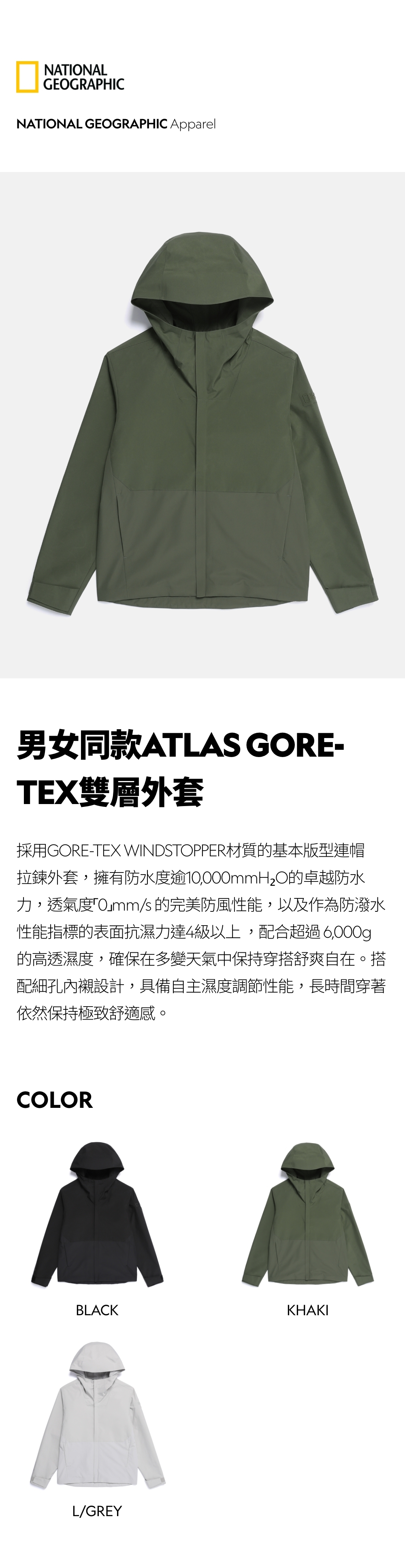 - 採用GORE-TEX WINDSTOPPER材質的基本版型連帽拉鍊外套,擁有防水度逾10,000mmH₂O的卓越防水力,透氣度「0」mm/s 的完美防風性能,以及作為防潑水性能指標的表面抗濕力達4級以上 ,配合超過 6,000g 的高透濕度,確保在多變天氣中保持穿搭舒爽自在。搭配透氣孔內襯設計,具備自主濕度調節性能,長時間穿著依然保持極致舒適感。