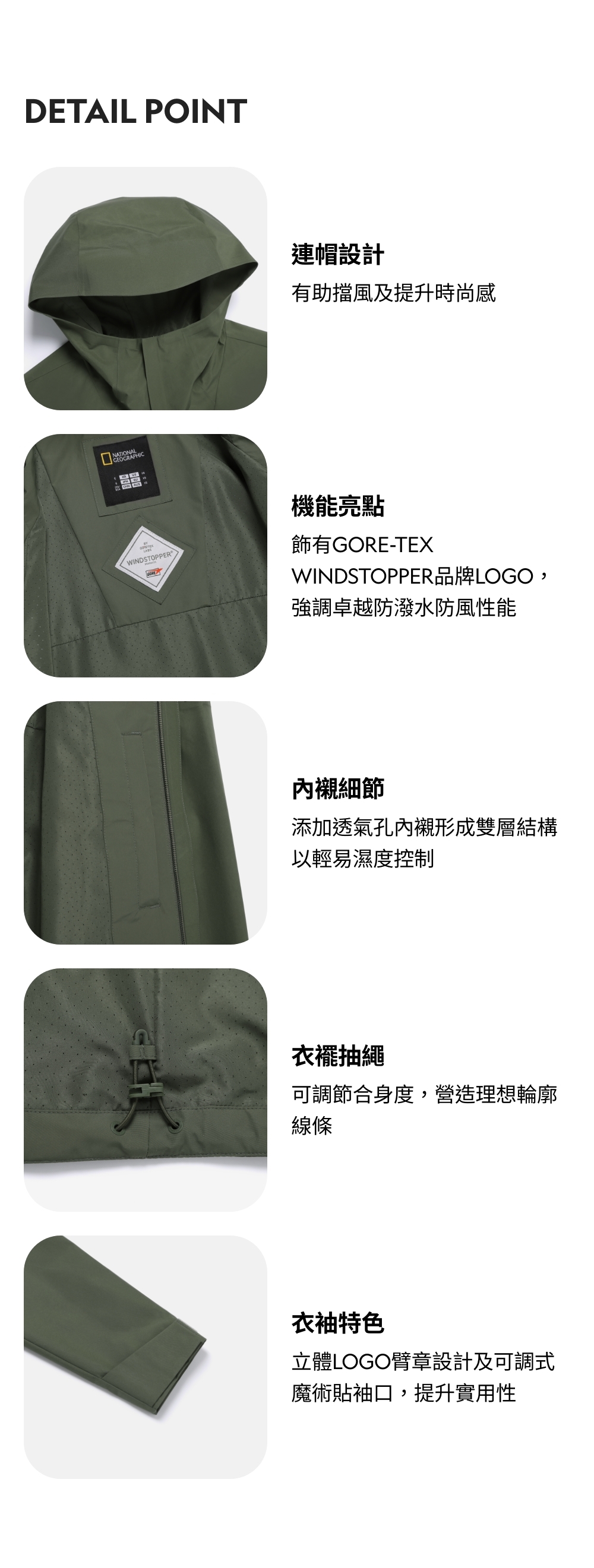 -機能亮點:飾有GORE-TEX WINDSTOPPER品牌LOGO,強調卓越防潑水防風性能