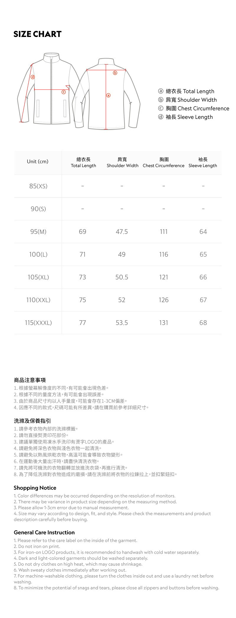 -衣袖特色:立體LOGO臂章設計及可調式魔術貼袖口,提升實用性