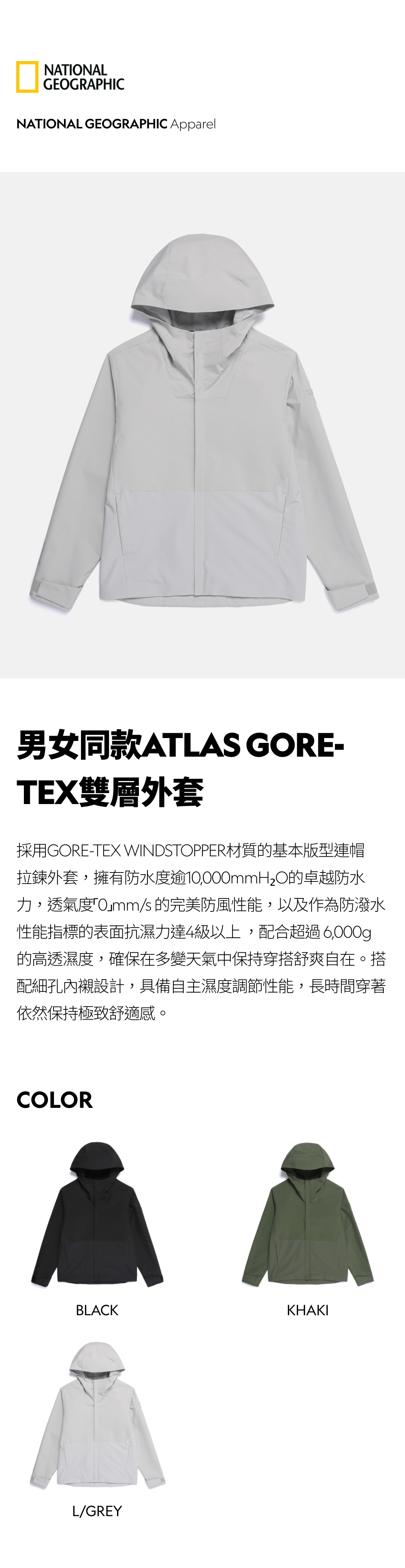 - 採用GORE-TEX WINDSTOPPER材質的基本版型連帽拉鍊外套,擁有防水度逾10,000mmH₂O的卓越防水力,透氣度「0」mm/s 的完美防風性能,以及作為防潑水性能指標的表面抗濕力達4級以上 ,配合超過 6,000g 的高透濕度,確保在多變天氣中保持穿搭舒爽自在。搭配透氣孔內襯設計,具備自主濕度調節性能,長時間穿著依然保持極致舒適感。