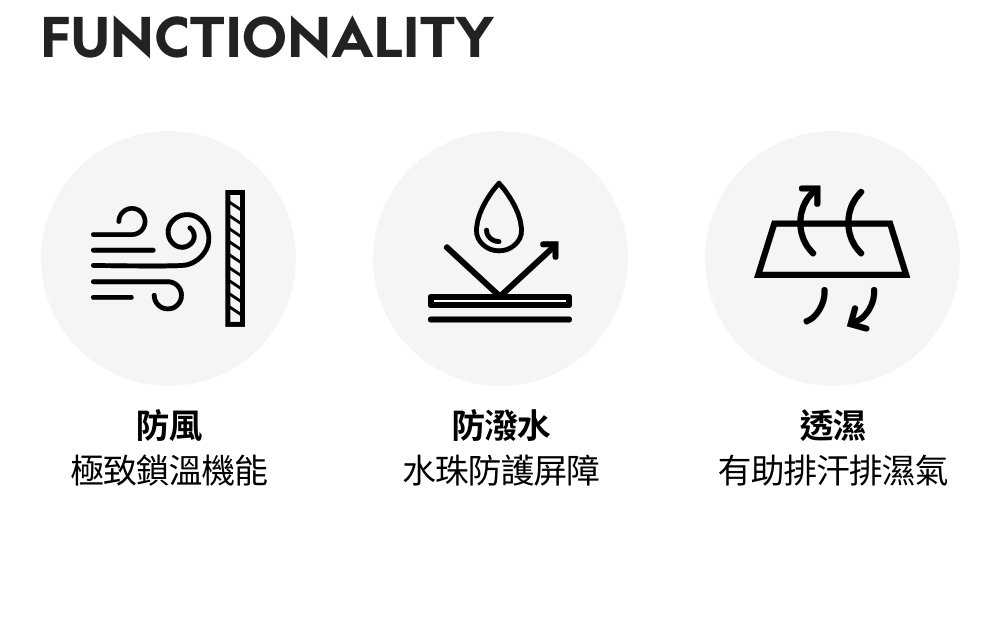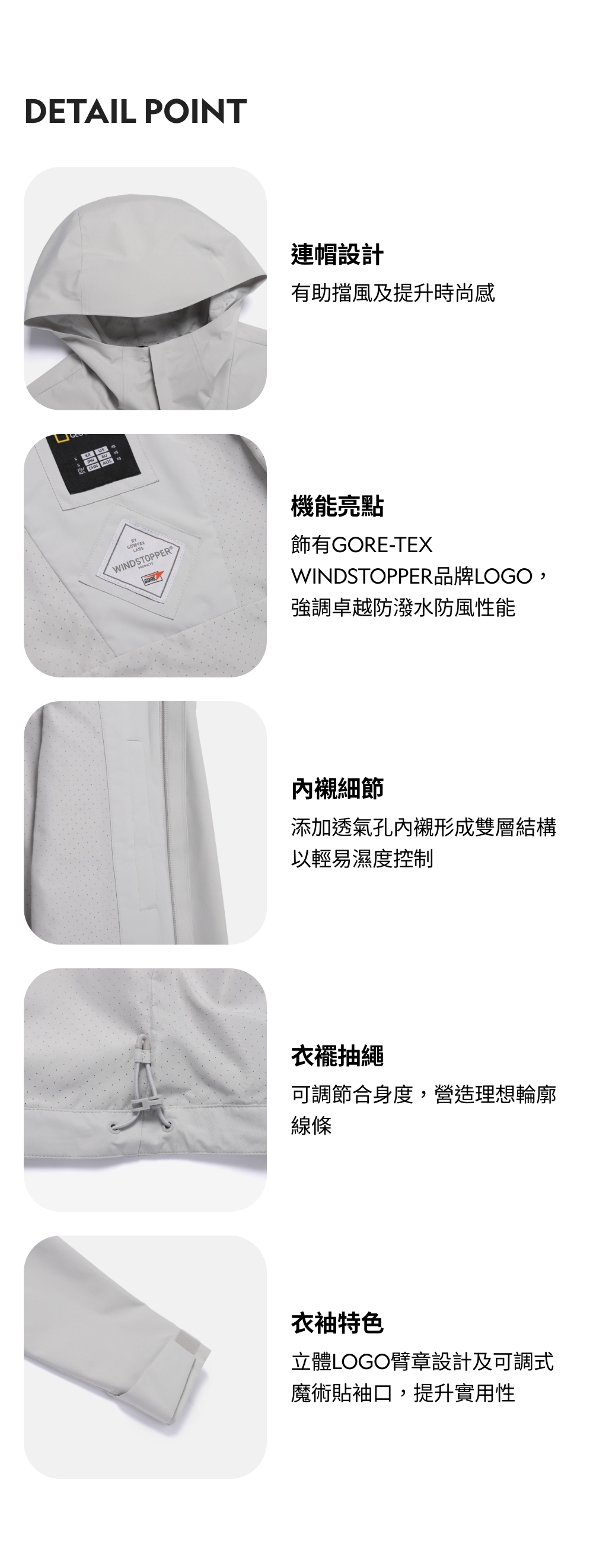 -機能亮點:飾有GORE-TEX WINDSTOPPER品牌LOGO,強調卓越防潑水防風性能