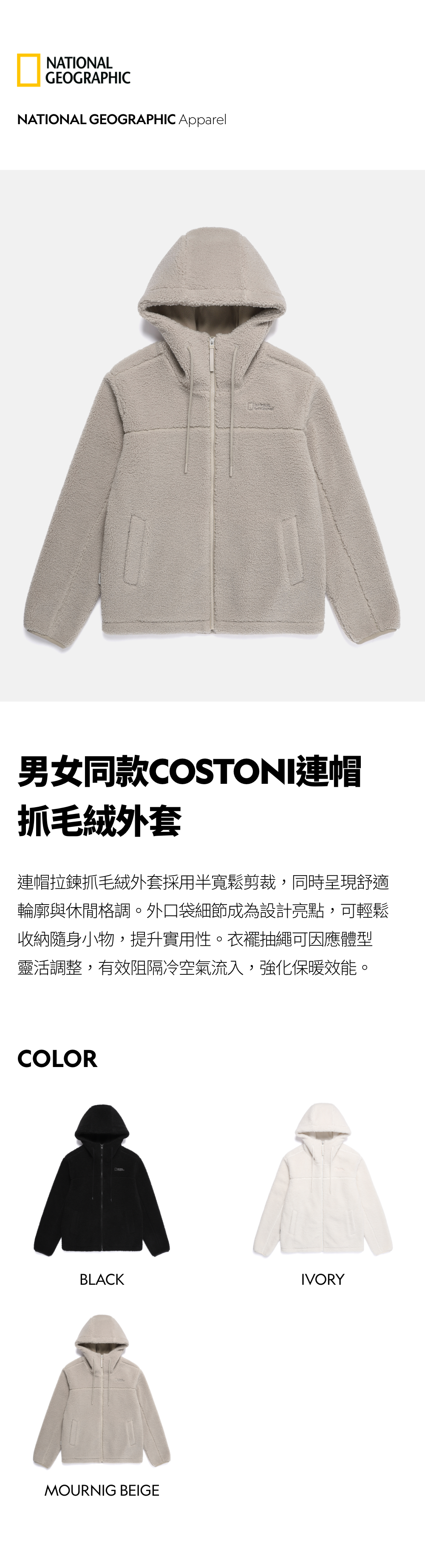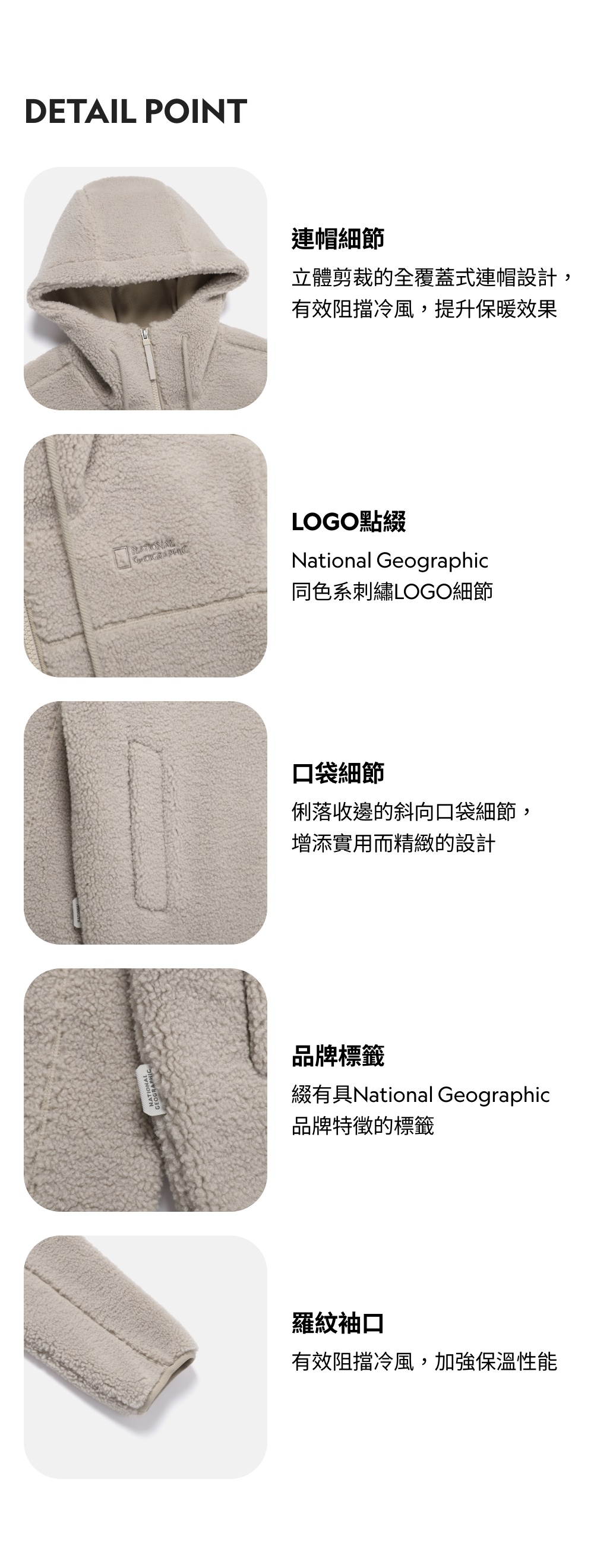 連帽細節:立體剪裁的全覆蓋式連帽設計,有效阻擋冷風,提升保暖效果